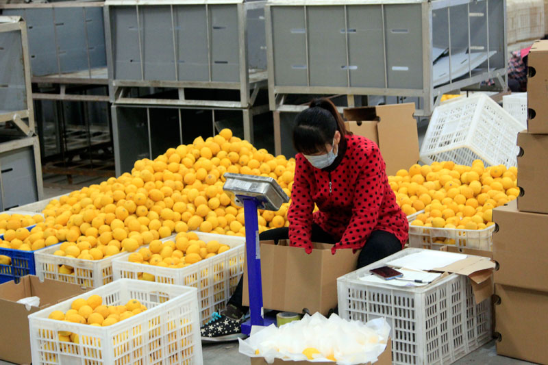| 华通柠檬员工正在挑选柠檬,进行装箱 |