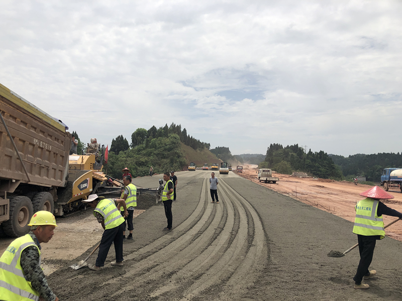 在另一处建设现场,工人们正在进行路面铺设工作,周围10余台压路机、摊铺机、挖掘机等大型设备正忙碌着,铺筑沙石、来回碾压。“全长23公里,从简阳江源镇到资阳雁江区、临空经济区,包含一标段8公里、二标段12公里,三标段3公里。”现场项目经理范国铮告诉记者,路面结构是路面成型的关键工程,分为垫层、底基层、基层、油面四道工序。预计6月10日起,从一标段开始进行油面铺设,7月底完工。