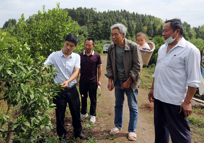 | 到水果园察看果树情况 |