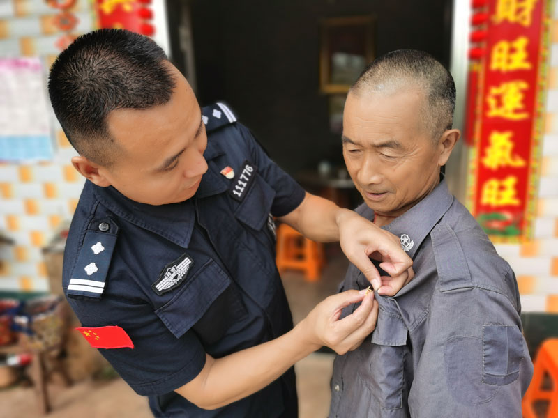 活动中,王祥金同志给老党员谢胜元同志佩戴党徽,蔡凡同志给谢胜元一家送上了端午节的慰问品粽子。