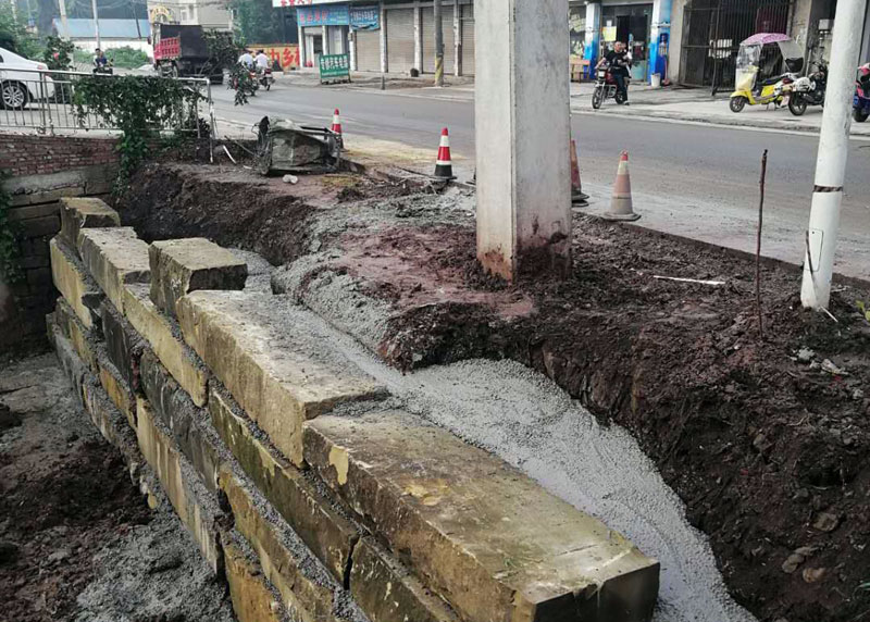 认识到违章行为的危害性,房屋主人反思了错误,并着手恢复杆塔基础。20:45分,房屋主人聘请的施工人员将恢复所需材料运送到场,在电力执法大队、丰裕政府、迎接供电所的共同安全监督监护下,挖机、吊车、混泥土罐装车开工运作,垒砌条石,浇注混凝土……杆塔基础恢复施工得以有条不紊地进行。次日5:42分,#7方杆下筑起崭新的基础,全体人员如释重负地离开现场。