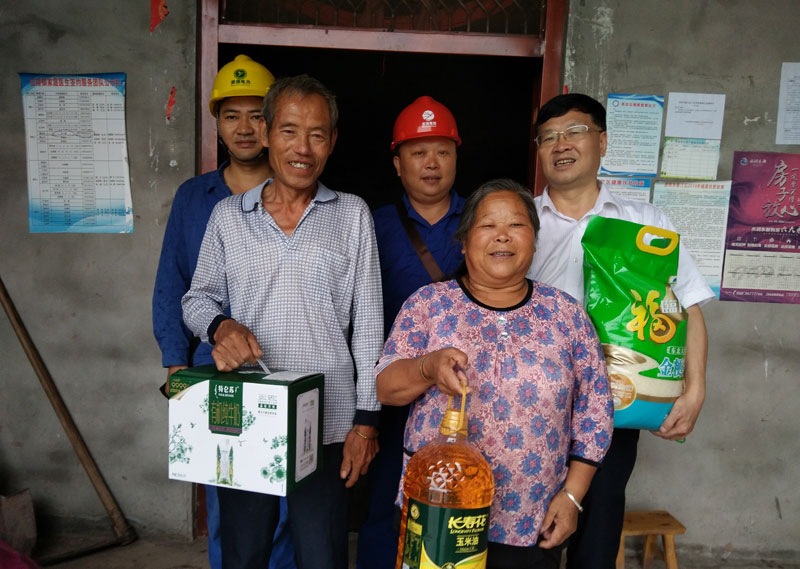 7月14日,资阳资源电力有限公司雁江分公司党支部组织“红细胞”志愿者冒着沥沥细雨到伍隍镇爆花村5社张光琴家中开展慰问走访,并送去米、油、牛奶等物资,张光琴夫妻俩高兴得合不拢嘴。