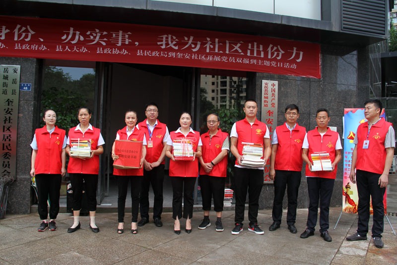 在奎安社区,全体机关党员整齐列队,面向鲜红的党旗,高举右手拳,集体重温入党誓词,铿锵有力的宣誓声表达了对党的热爱与忠诚,再次接受了精神洗礼。宣誓仪式后,驻区单位还向奎安社区赠送了党建书籍,方便社区党员通过查阅相关资料,全面了解和认识党的历史,宣传党的路线方针政策,巩固基层党组织的战斗堡垒作用。