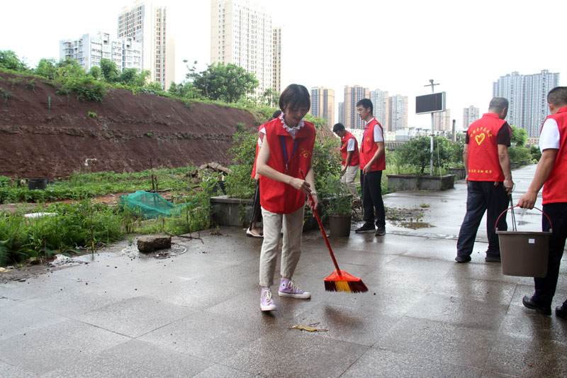 随后,全体机关党员与社区干部、网格员一道,来到辖区金凤街开展环境卫生整治志愿劳动。大家撸起袖子,拿起扫帚、镰刀、铁铲等工具,认真清除花丛中的杂草,精心修剪各类花木,清运长期无人清理的店面外泥土、杂物等垃圾,干得热火朝天、满头大汗。活动中,还主动向往来居民宣传环保知识,积极引导广大居民积极参与环保活动,共同维护优美居家环境。