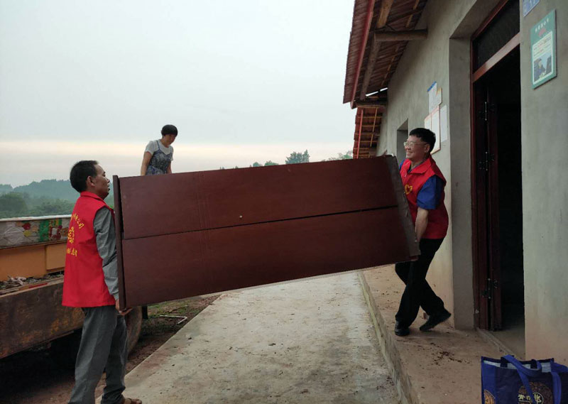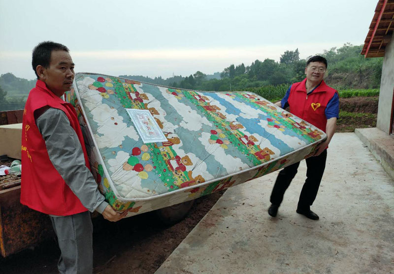 资源集团雁江分公司为新房添置了床、床垫、饭桌、书桌各一张,椅子六把,床头柜两个,电视柜一个,衣柜一个。原本空空荡荡的房子搬入了家具,尹良看在眼里,喜在心里。他衷心感谢党和政府以及电力公司帮助他脱贫摘帽,并邀请“红细胞”志愿者在新房门口合影留念。