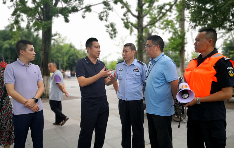 | 8月17日,雁江公安分局党委书记李强沿沱江江堤检查秩序维护和围观群众劝导工作 |