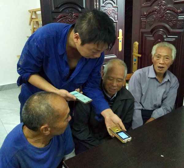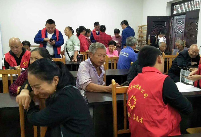 10月13日,小院镇栀子村村公所门庭若市、人气很旺,村民们围绕在电力员工的周围咨询“网上国网”的操作方式。