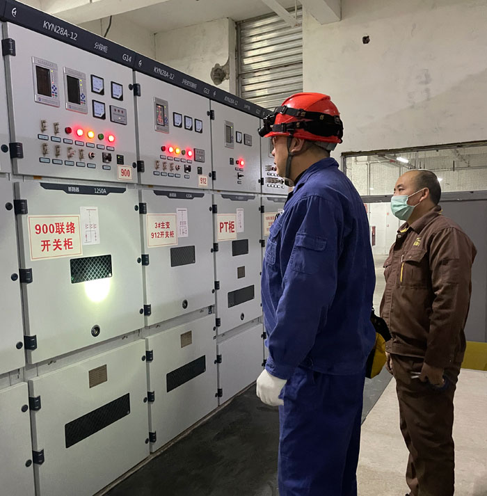 该公司用电检查与反窃电班来到资阳市公安局,工作人员进入配电房,了解现场电气设备配置详情及电缆走向。