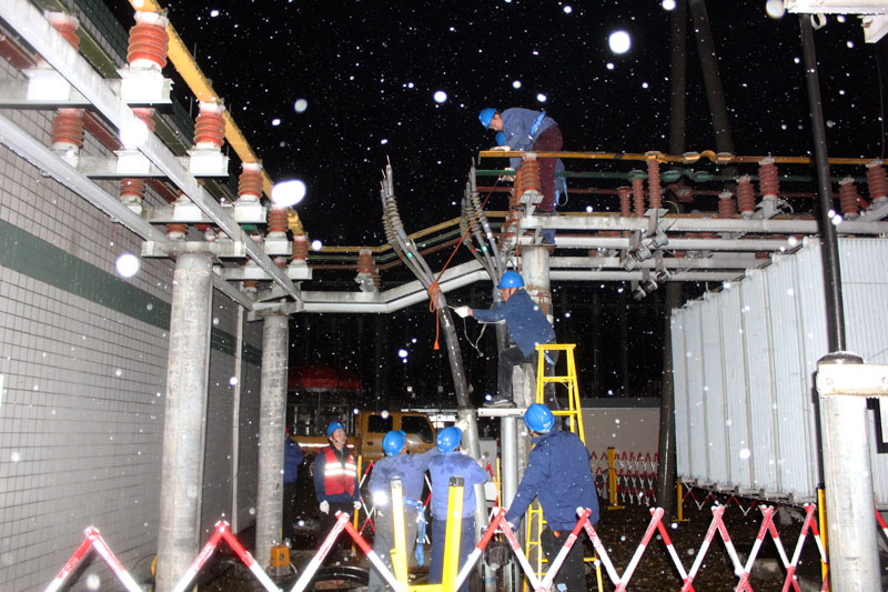 四川新闻网消息(王希忠 徐燕强)1月7日23点03分,资阳市安岳县气温只有0℃,寒气逼人,夜空飘起雪花。此时,110千伏镇子变电站内灯火通明,国网资阳供电公司变电检修班、变电二次运检班、电气试验班11名检修人员准备对10千伏母线及附属开关柜进行检修及缺陷处理。