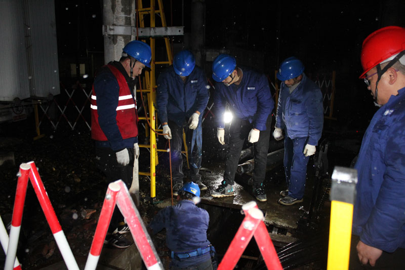 为应对深夜严寒工作,工作班提前做好了作业方案及应急预案,做到危险点分析到位,预控措施、保温保暖措施落实到位:增设安全监护人,重点监护作业风险及检修人员的精神状态;安全帽加挂头部照明灯,随时保持检修视野明亮;工作现场配备医药箱、“暖宝宝”、热水干粮等保温保暖措施。
