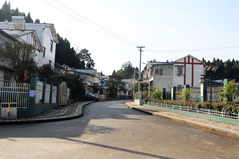 “这几年脱贫,很多干部来帮我们,帮我们规划房屋改造,帮我们修路,还承包了土地栽种果树,给贫困户分红。现在好了,我家修了新房子,水泥路都通到家门口了。干部们还经常到我家来关心我们、帮助我们。感谢党的好政策。”天马乡画青村的李国芳家里新修了房子,房顶上装有太阳能热水器,院坝外的水泥路通向远方。