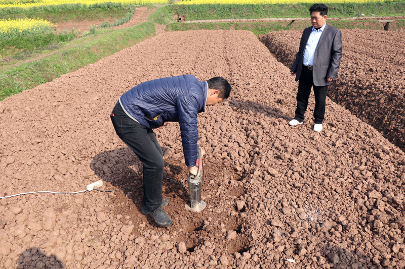 四川新闻网消息(朱国强 艾兰花)“嗡嗡嗡……”伴随着一阵电动打窝机的机器轰鸣声,仅需二十几秒,一个深度在三十厘米左右的姜窝便出现在记者眼前。3月12日,在安岳县石羊镇成风村(原顶新乡辖区)伟霖家庭农场的生姜备耕地里面,业主陈伟林正手持电动打窝器,打下一个又一个深度一致的姜窝,为今年的生姜种植做好准备。