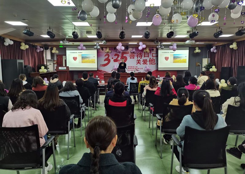 本次活动特邀西南交通大学心理研究与咨询中心教授唐静授课。她通过“善爱我——心理压力调适”知识讲座和暖身活动、快乐分享等互动活动,缓解职工的心理压力,指导职工如何在日常生活、工作中善待自己,关爱他人。现场答疑环节将整个活动推向高潮,唐静教授以谈心的方式,耐心地解答职工的困惑,引导职工以积极豁达的心态释放压力,善待自己。