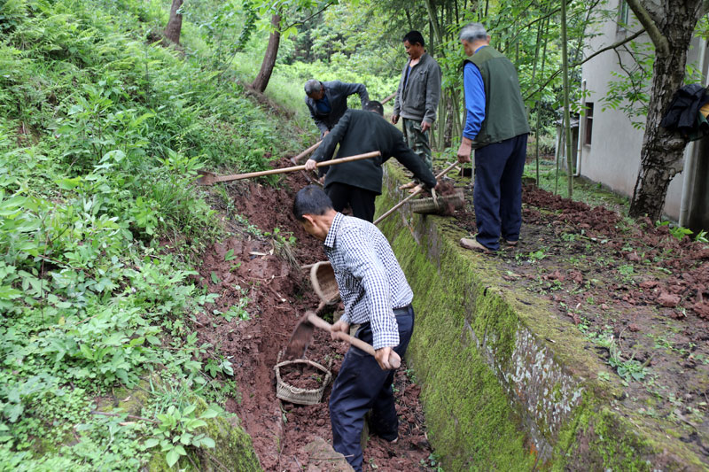 “大家加把劲,我们一定要在水库放水前把沟渠清理干净。”在天马乡聚宝村,村支书董先齐正带领着十余名工人对全村的灌溉水渠进行疏通清理。“我们村有两条灌溉水渠,总长度达六公里,在乡上开展的问民所需走访过程中,我们了解到许多群众都希望能把灌溉水渠疏通清理一下。了解情况后,乡上便马上拨付资金,让我们组织人员进行疏通清理,现在清理工作已基本进入尾声。”董先齐一边清理沟渠中的淤泥,一边介绍道。