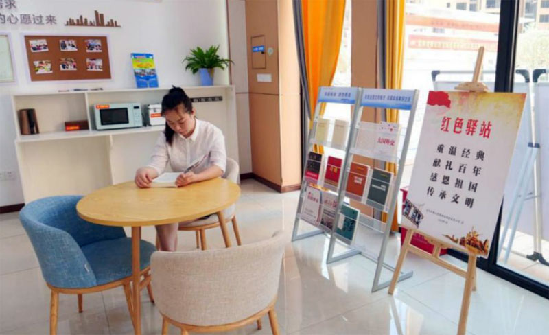 小驿站随时读。“红色驿站”采取“4+1”管理办法,即有书籍、有标牌、有专人管理、有保障经费,以及群众自助服务模式。通过建设“红色驿站”为群众提供学习的平台,把文化传承与群众的爱国情怀有机结合起来,推动红色读物“看得见、拿得到”,让党史阅读“触手可及”随时读。