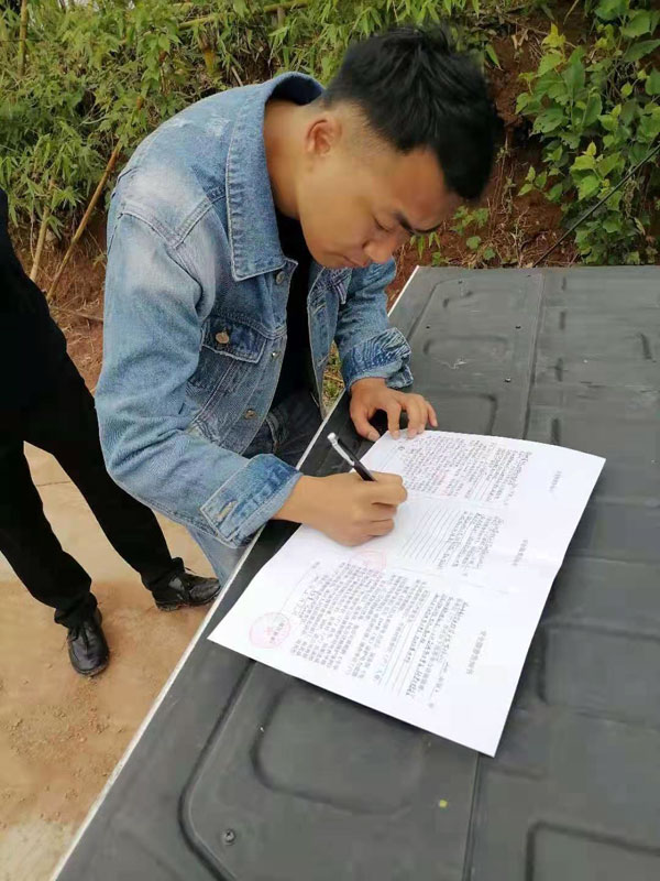 丹山供电所将隐患报送至雁江供电公司安监部门,雁江区电力执法大队队长曾友军率队到达现场,经勘查核实,位于田坎之上的电杆有所倾斜,的确存在倒杆风险。电力执法大队随即通知资阳市某农业投资开发公司负责人来到现场签署安全隐患告知书,要求施工方15日内消除隐患,确保公共用电安全。