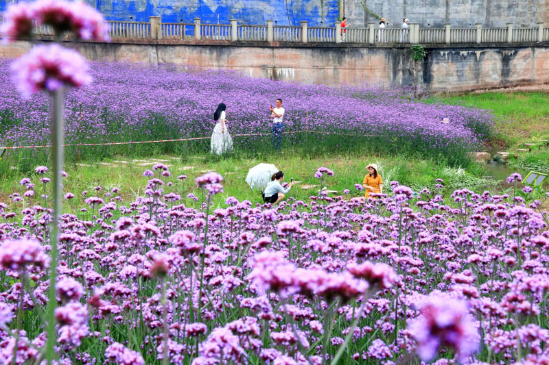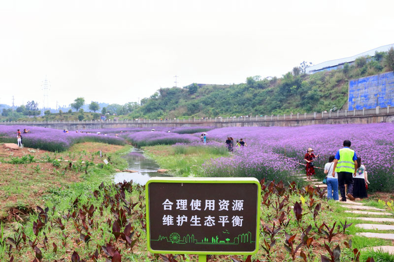 四川新闻网消息(朱国强 袁芳)清澈见底的溪流缓缓流淌,盛开的马鞭草随风摇曳,成群的蜜蜂蝴蝶在花丛中翩翩起舞……5月13日,在安岳县岳阳河与其支流城东河的交汇口,昔日的菜地变成了新晋网红打卡点——双河口人工湿地,游玩的群众三两结伴,一张张笑脸,一声声笑语,好一幅人文美景图。