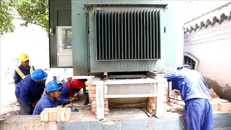 “采取变压器台基础升高50厘米的方式来操作,这样即使洪水来临,大家也不用再担心用电问题了。”施工队负责人李泽文介绍,为了减少停电时间,采用两台吊车同时施工,3个施工队伍流水线作业,将原本两三天的工作任务压缩至一天内高质高效完成。