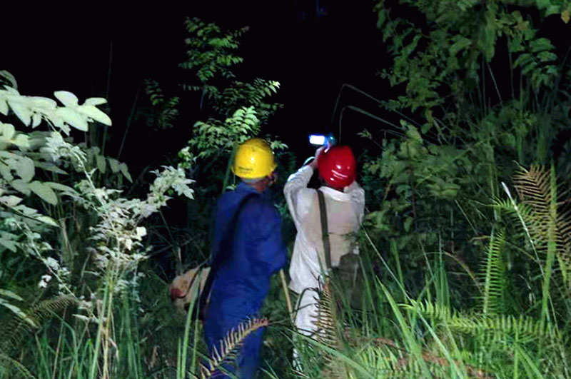 “夜间巡视一定要老师傅带,如果不熟悉路,走到野外的山林子里就出不来了!”对于输电线路的夜巡工作,曾晓笛深有体会。“蚊子多还是小事,最怕的是蛇,走山路一定要穿上长筒胶鞋,还要带根棍子探路!”