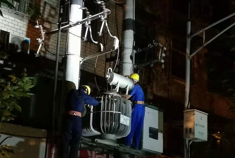 “请安排工程队人员帮忙抢修!”考虑到线路、设备受损较严重,抢修工作量较大,叶发胜第一时间发出了支援请求,同时安排服务班3名队员准备抢修物资。30分钟后,黄色的吊车驶入故障点,随后一台崭新的配电箱腾空而起;另一处,三名检修人员正有条不紊地更换烧坏的变压器配件。