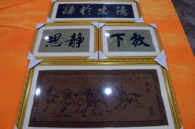 在竹编兴趣教室里,一幅幅由老师和同学们制作的竹编制品分类陈列,有制作精美的竹编文字和竹编图画,也有编制精巧的竹篮、筲箕等生活用品,其中一幅制作精美的《八骏图》竹编作品格外吸人眼球。
