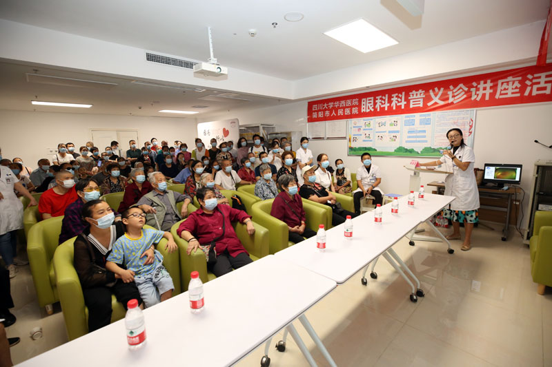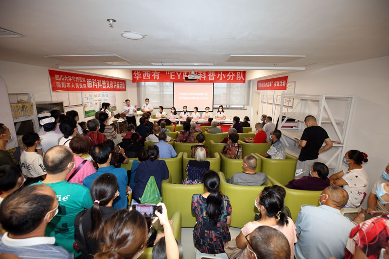 9月25日上午,在简阳市人民医院门诊6楼,一场由该院联合四川大学华西医院举办的眼科科普义诊活动正在火热进行,现场围满了前来听讲座和义诊咨询的群众。这是简阳市人民医院在国庆期间开展的“我为群众办实事”系列实践活动之一,该院通过与四川大学华西医院眼科的合作,让群众在家门口就能看到大医院大专家的门诊,切实为群众办实事办好事。