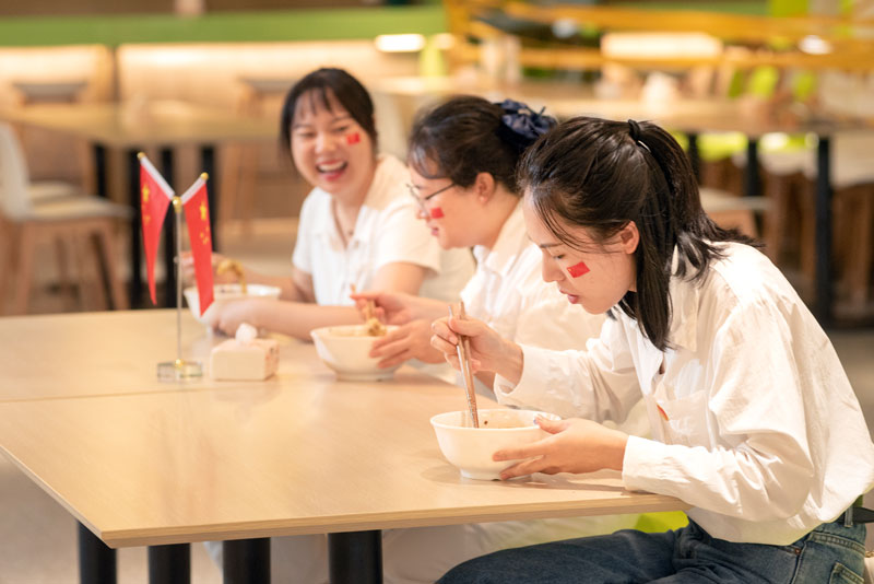 在活动中,医务人员共聚一堂,同吃祖国母亲的“长寿面”。通过吃爱国面,祝福祖国母亲繁荣昌盛,感受生活美好,不断增强获得感、幸福感、安全感。