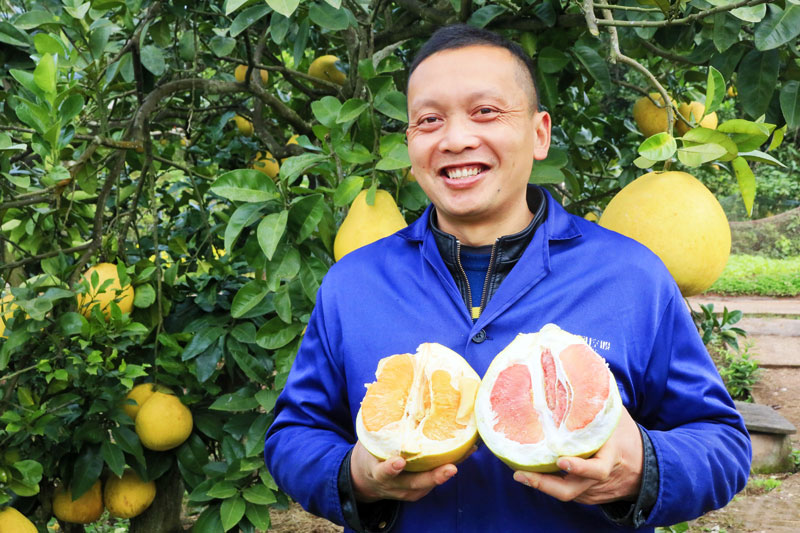 “2015年前,我还种植了二十多亩本地通贤柚,但因为市场竞争愈发激烈,每年效益并不算好。”面对严峻的市场行情,江志贵没有退缩,他经过市场考察,结合本地气候条件,将二十多亩通贤柚全部改良嫁接了市场销售行情好的红心柚、黄心柚和金橙蜜柚等品种。不仅如此,2017年,在长河源镇党委政府的引导下,江志贵还在贫困村金堂村流转了近一百亩土地,种植了金秋砂糖橘、大雅一号、耙耙柑等水果品种,为脱贫攻坚贡献了一份自己的力量。