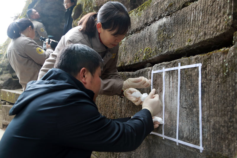 会后,专家们来到安岳县圆觉洞石刻保护区,就考古调查技术和石窟保护修复技术进行现场交流。