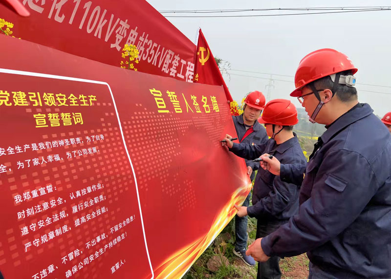 活动中,资阳资源公司电力建设分公司党支部在施工现场召开了“讲安全”党课,研究部署安全生产重大事项,分析安全生产存在的问题,并现场分享交流安全生产心得。党课结束后,全体党员高举右拳,齐声宣誓党建引领安全生产誓词。同时,为充分发挥党建在宣传引导、作用发挥和保障支撑等方面的独特优势,电建分公司党支部书记、副书记与施工项目部党员签订了《安全责任承诺书》。