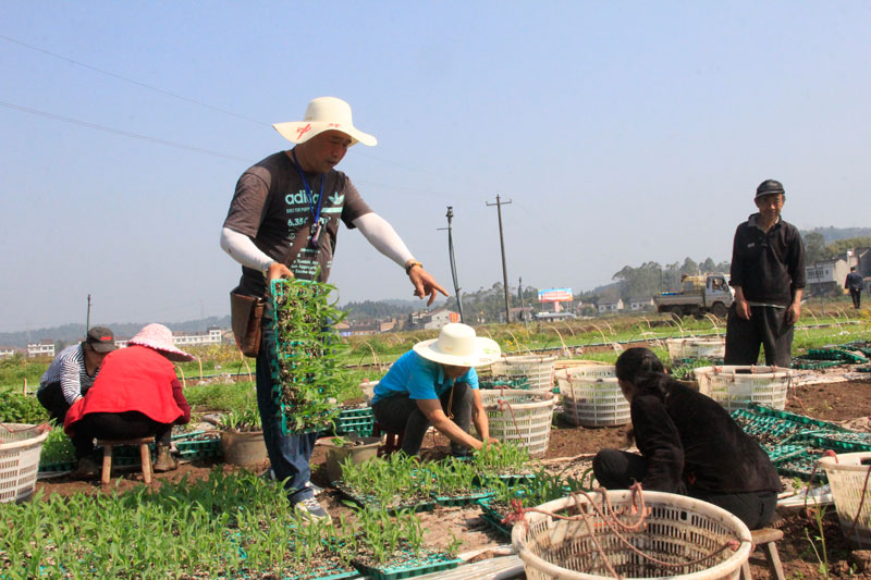 在基地里,记者看到有几名残疾群众也在地里劳作,做起活来动作麻利,一点也不含糊。李天友告诉记者,他基地工人最多的时候有100余人,最少的时候都保证在50余人,还尽量帮助当地一些残疾困难群众,为他们提供多元化的岗位,比如育苗、移摘、撒肥等,尽量做到人岗相适,同工同酬,保证大家能拿到一样的工钱。