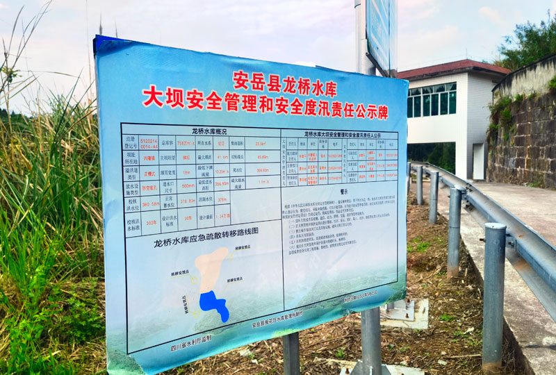 | 安岳县龙桥水库大坝安全管理和安全度汛责任公示牌(潘政吉摄) |