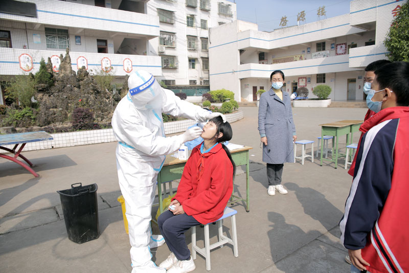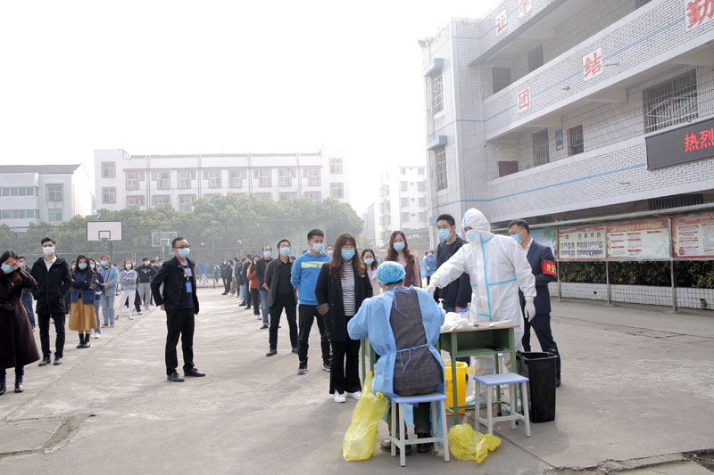 | 医务人员正在为教职工采集核酸 |