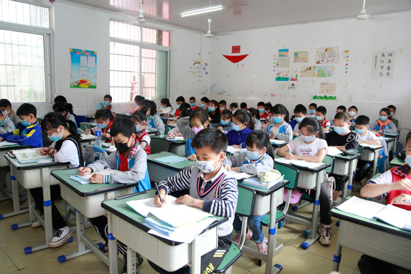 13日下午,在东方红小学,体育老师正带着学生在干净整洁的操场上开展体育活动,位于底层教室的四年级七班正在上数学课,其他楼层传出朗朗读书声。