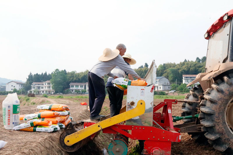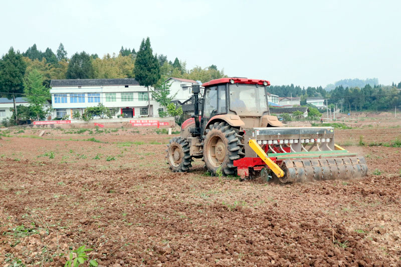 四川新闻网消息 不误农时不负春,一年好景看春耕。眼下正值春耕播种时节,4月11日,记者前往安岳县高升乡天佛村,在公路边远远就看见田地里有旋耕机在来回穿梭,旋耕、施肥、播种、覆盖4个工序同时进行……
