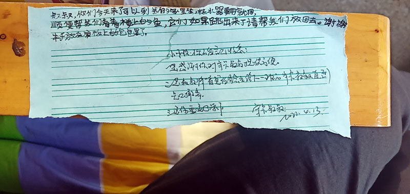 四川新闻网消息 “叔叔,你们今天来了可以到我的家里坐,热水器要用就用,顺便帮我们看看楼上的鱼,它们如果跳出来了请帮我们放回去。谢谢!”近日,两板桥镇巴岩村疫情防控卡口值守人员蒋廷兵在临时帐篷中发现这样的留言,纸条上的话语让现场的值守人员又惊喜又温暖。