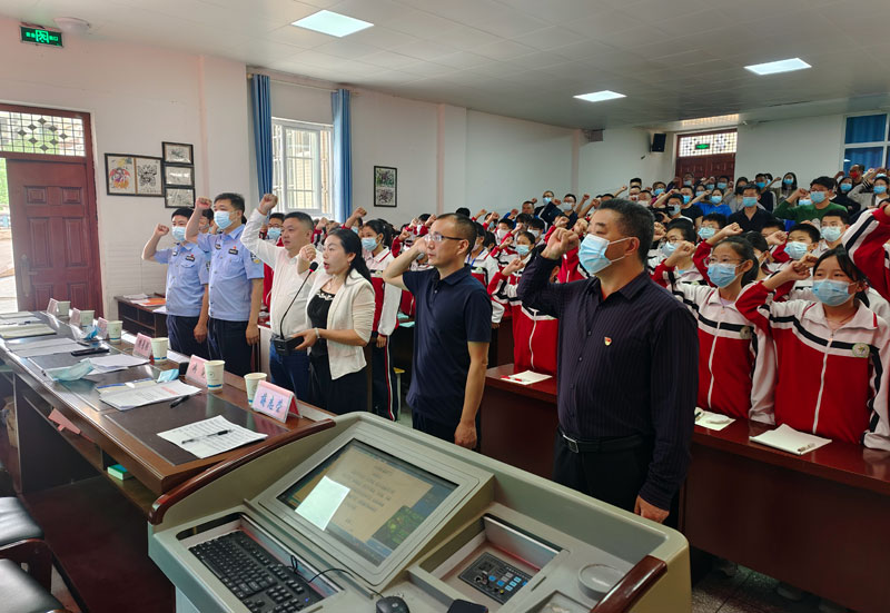 重温“一次”禁毒誓词,悄然埋下禁毒种子。4月22日,岳阳镇在启明九年制学校召开岳阳镇2022年青少年毒品预防宣传教育暨表扬大会上,组织全体参会师生100余人进行禁毒宣誓。