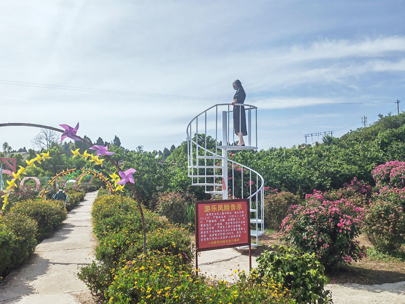 “为让游客增加体验感,景区新增了网红爱心椅、爱情天梯、网红蹦蹦云、孔龙侏罗纪、空中滑绳等项目,目前景区内共40余个游玩项目。在五一期间,游客入园约2.5万人次 ,实现门票收入达21余万元。”悦缘花谷负责人谭滟介绍道。