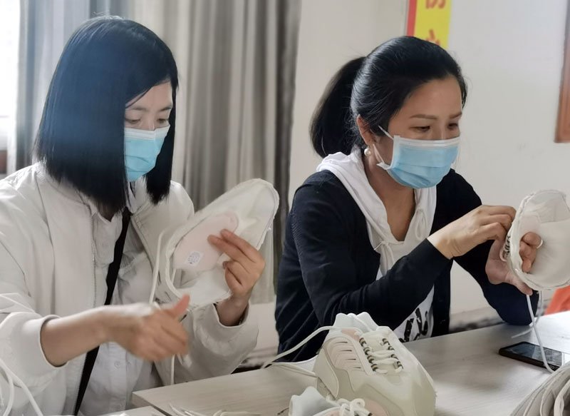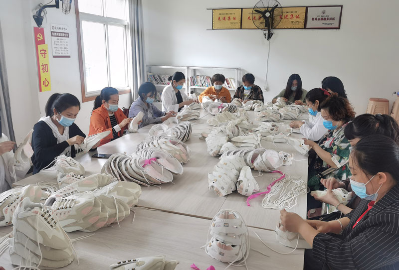 “我是一名残疾人,有点不好找工作,学会这穿鞋带工序后,每天利用闲暇时间能穿一百双左右,每月就能增加些收入。”社区居民蒋建笑着说。