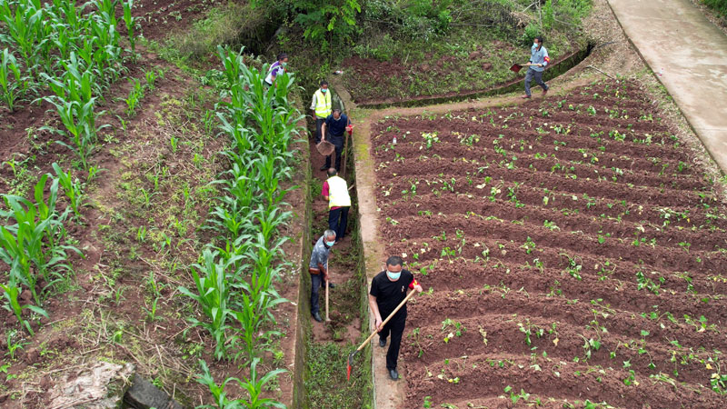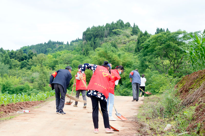 当天,双鹅村20余名党员志愿者和群众手拿铁锹、扫帚、锄头等工具,清理村道沿线杂草和沟渠堆积物。“作为党员,是荣誉也是责任,能为乡邻尽份力,再累也不觉苦。”双鹅村3组的党员志愿者蔡孝志提着铁锹半蹲在水渠里,挥汗如雨,脸上挂笑。水渠旁,几位群众笑着说,蔡孝志为村里做了不少贡献,无论村里大小事,他都肯献力。