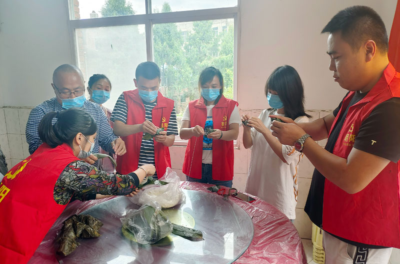 洗棕叶、系五彩绳、包粽子……活动中,党员干部们撸起袖子,“熟手”带“新手”,大家一边分享端午节的风俗趣事,一边讨论包粽子的方法技巧。在热火朝天的气氛中,一片片粽叶,一颗颗糯米,经过大家灵巧的双手变成了一个个香甜的粽子。