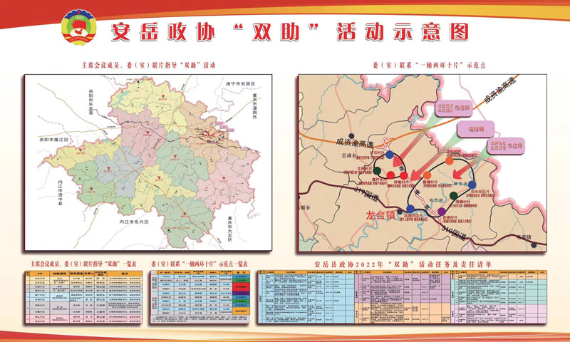 2022年4月以来,安岳县政协深入开展贯彻落实中央、省委政协工作会议精神“回头看”,按照省、市政协关于开展“双助”专项活动的部署要求,组织引导县政协组织、参加单位、各专委会、全体委员和机关干部聚焦乡村振兴、着眼民生实事,深入基层,走进群众,倾听民声民意,反映民情民愿,发挥人民政协职能优势,彰显履职为民责任担当,凝聚社会各界智慧力量,积极协助党委、政府增进民生福祉,不断提升群众获得感和幸福感。