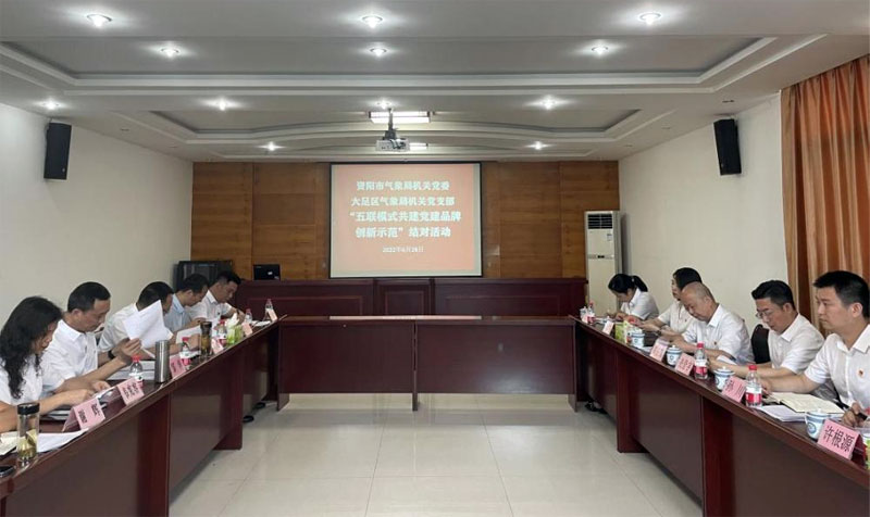 四川新闻网消息 6月28日,四川省资阳市气象局机关党委和重庆市大足区气象局机关党支部联合开展“五联模式”共建“风云气象·服务为柠”党建品牌创新示范结对活动。