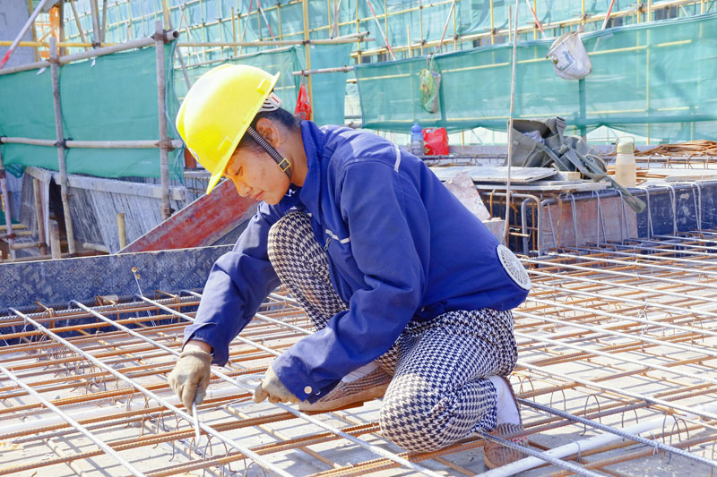 在项目工地上,在众多的钢筋工中,仅有的一位大姐一下子就引起了记者的注意。记者只见她将细细的扎丝绕在钢箍和钢筋的结合点上,迅速用扎钩一扭一紧便固定好了,动作相当娴熟。据介绍,她是来自安岳县石桥街道的吴仁会。
