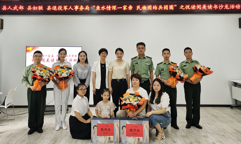 “八一”前夕,县妇联联合县人武部、县退役军人事务局开展了“鱼水情深一家亲·民族团结共团圆”之悦读阅美读书沙龙活动。活动通过分享《“八一”颂》《最可爱的人》等经典诗篇、讲述边防军人陈祥榕烈士事迹、市县最美家庭中的军人家庭分享温馨家庭故事等方式,致敬最可爱的人。活动现场还进行了国防知识有奖竞答,并为退役军人及军属送上鲜花和慰问品。