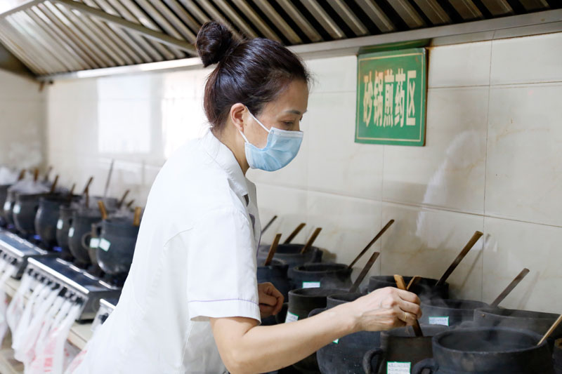 | 安岳县中医医院煎药房煎药工正在煎制防疫“大锅汤” |