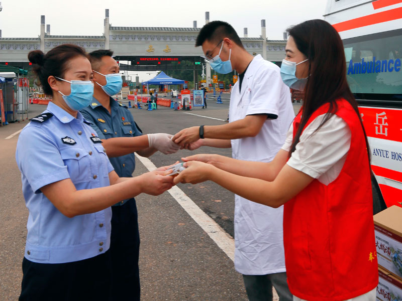 | 县中医医院组织工作人员和志愿者在渝蓉高速安岳出口防疫点免费配送防疫“大锅汤” |