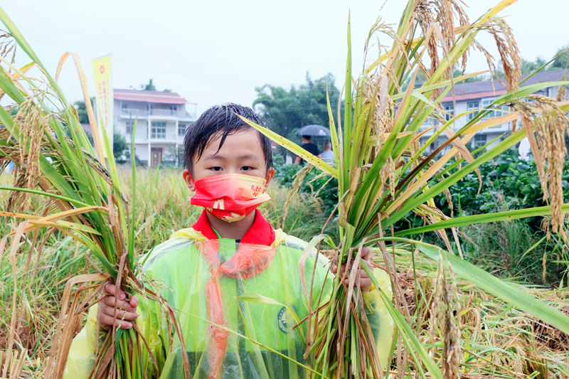 当天,有很多和陈奕轩一样的小学生,在这里体验农事活动,他们收割的水稻将会被活动主办方加工成新鲜大米,经过精品包装后,印上劳动者姓名,作为丰收节礼物。