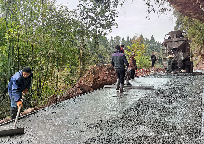 | 长生桥村庙子坡道路建设现场 |