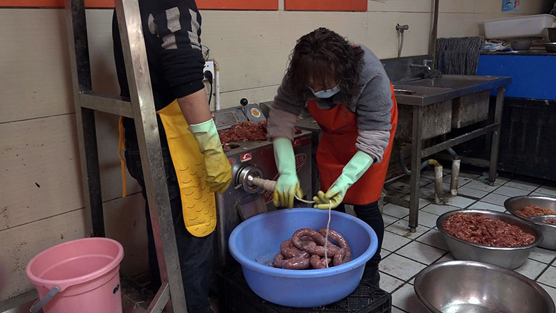 “年关将至,我们又开始制作香肠,因为我们是本地企业,选用的是本地猪,猪肉品质不错,物美价廉。冬至过了,灌香肠的顾客越来越多,大多数是老顾客和回头客。我们是手工灌,特别保证品质,肉质流油吃起来不会觉得肥也不会觉得干柴。”鑫普州超市店长姚莉介绍。